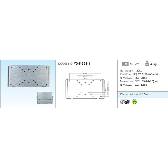 / ART. 5003 – SOPORTE MONITOR YD-F-558-1 PLATEADO 100X100 VESA COMPRAR EN WWW.DAVOS.AR