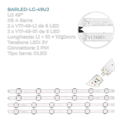 ART. 6445 x2 – KIT DE 2 TIRA 6L1+6R1 LED LG 49UJ6560 49UJ6510 102cm 3V